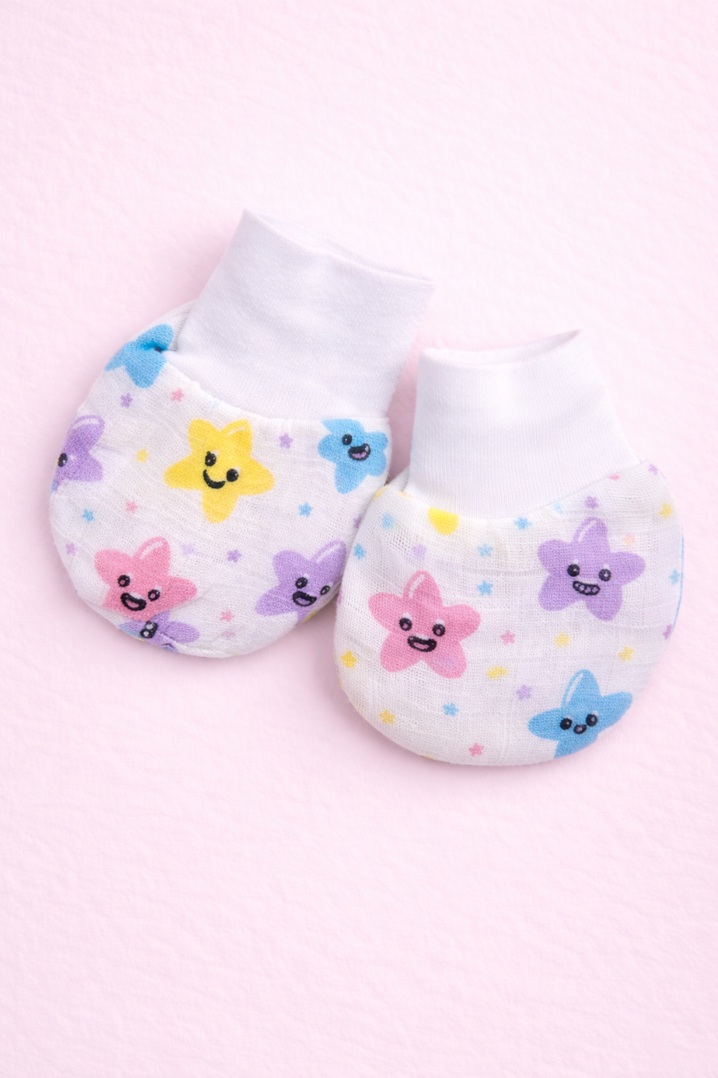These soft cotton baby socks feature a cheerful smiling star print in pastel shades, designed to add a playful and comforting touch to baby essentials. Made from lightweight, breathable cotton fabric, they are gentle on delicate newborn and infant skin and suitable for everyday wear.
