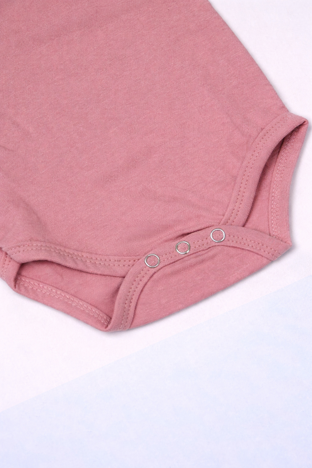This dusty pink baby bodysuit is crafted from premium-quality cotton to provide exceptional softness and breathability for delicate baby skin. Designed for everyday comfort, it features a clean, minimal look that works well across global retail and wholesale markets. The short-sleeve design allows easy movement, while the snap-button closure ensures quick and convenient diaper changes. Durable stitching helps maintain shape and quality even after repeated washing, making it suitable for bulk supply and export requirements.