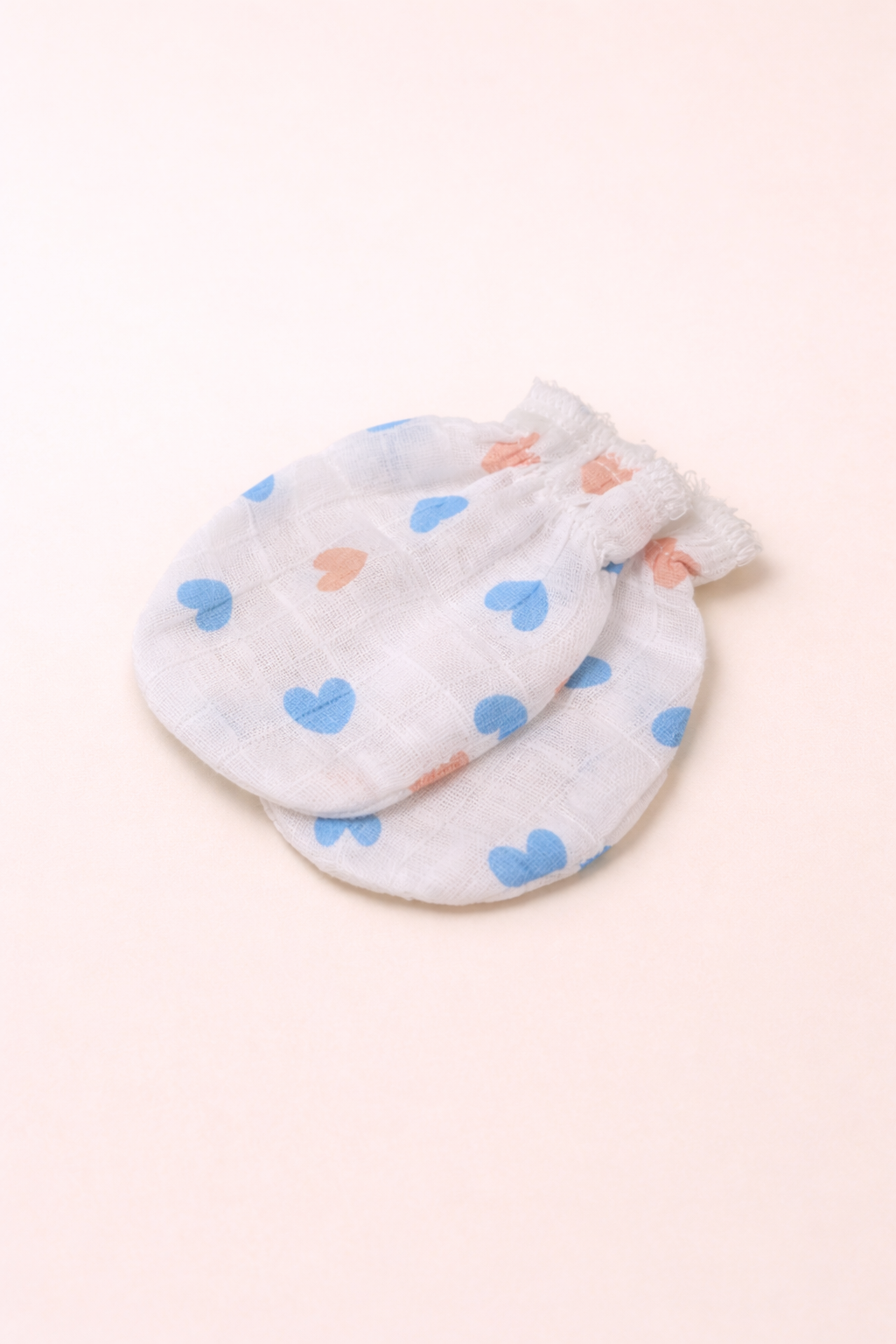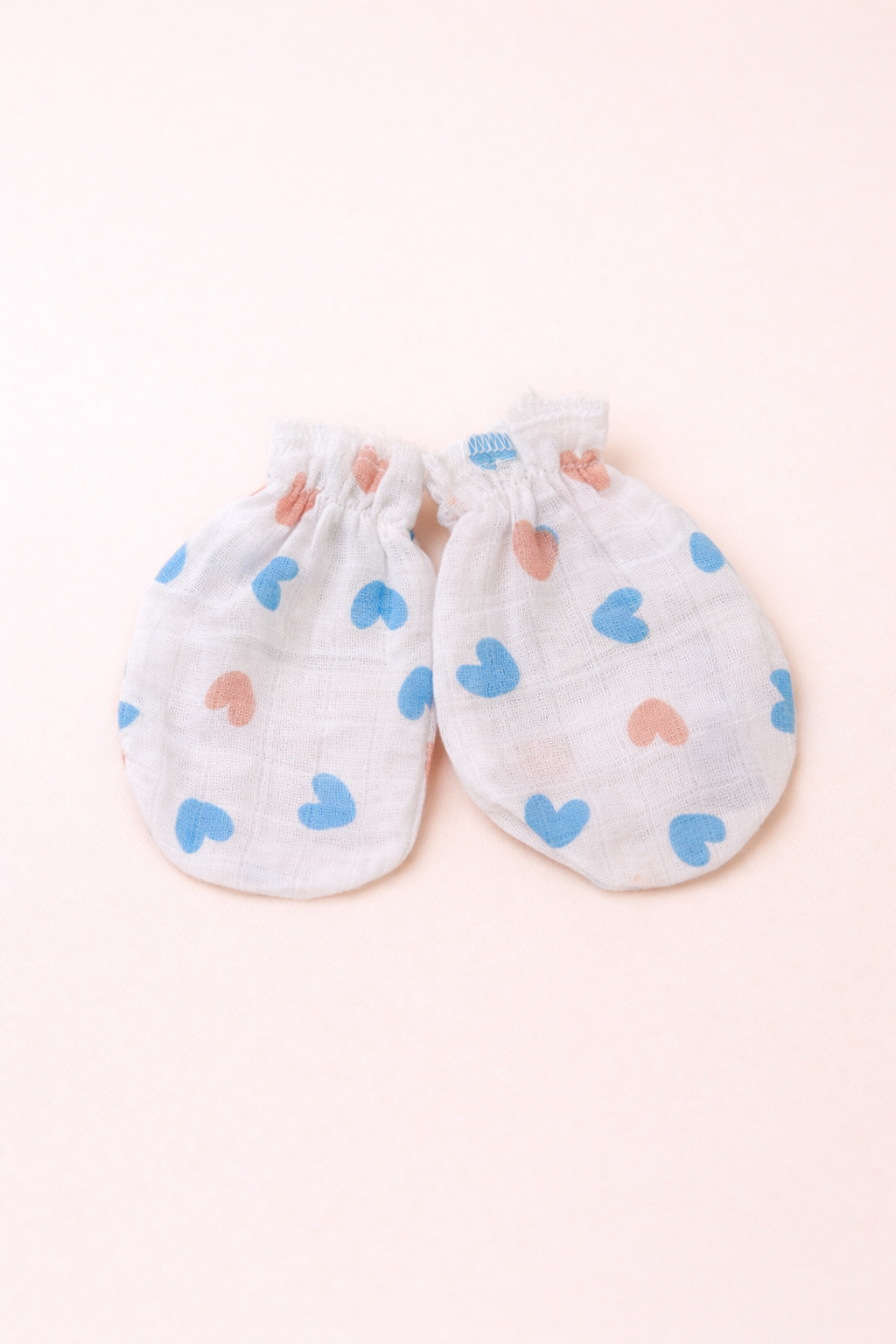 Newborn Muslin Cotton Mittens – Soft Heart Print | Gentle Baby Hand Gloves