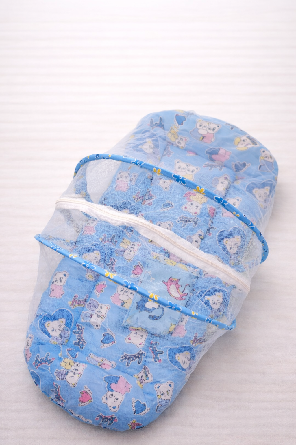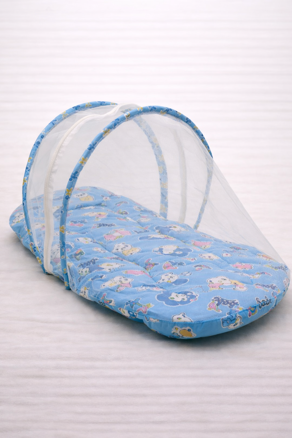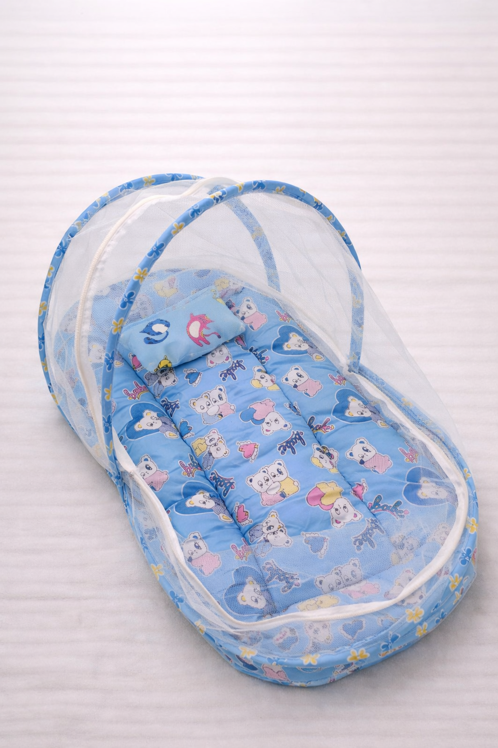 Portable Baby Mosquito Net Bed with Soft Mattress & Pillow – Foldable Infant Sleeping Bed (Blue)